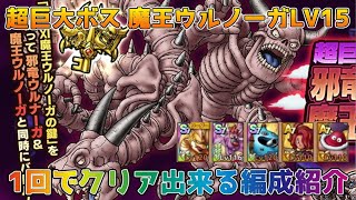 『ドラゴンクエストタクト』の超巨大ボスバトル 魔王ウルノーガLV15を1回でクリア出来る編成を紹介しました! 敵のランダム行動の部分次第...